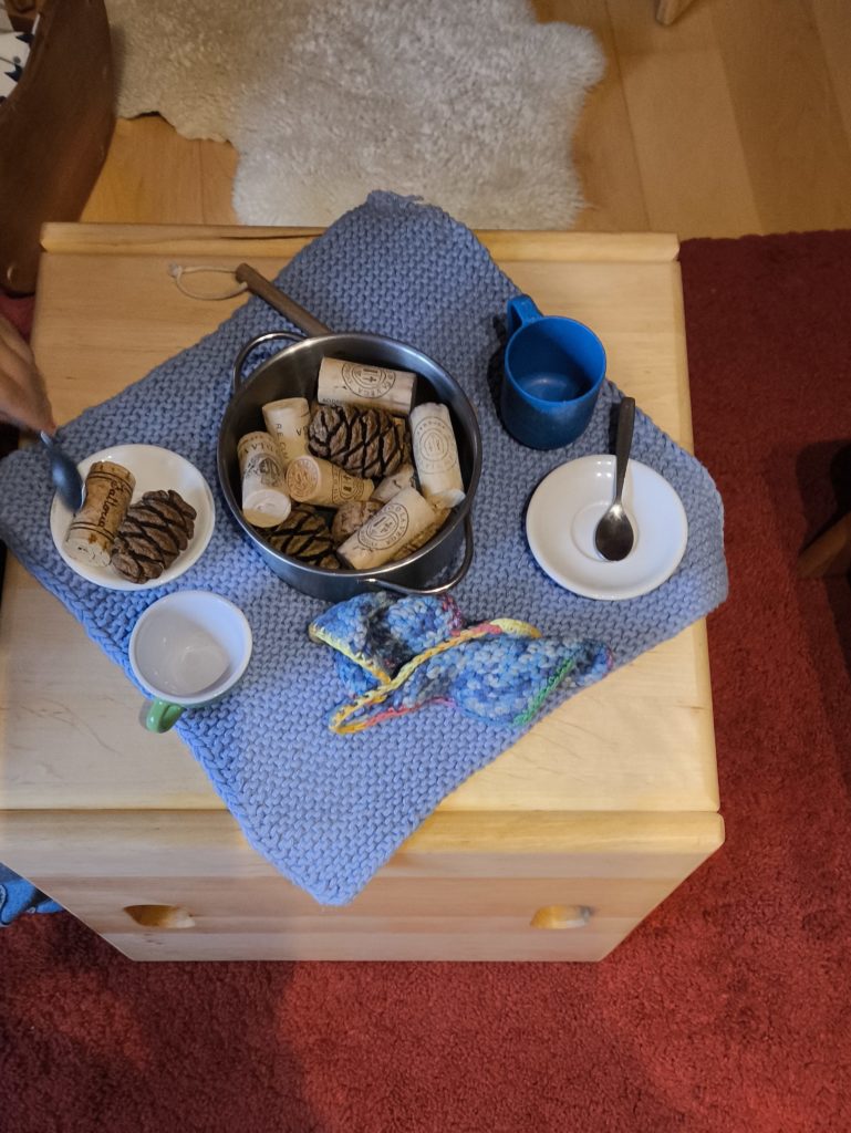 Natürlich prägt meine Ausbildung als Waldorferzieherin mein Tun, aber ich versuche auch Impulse aus anderen pädagogischen Ansätzen mit einzubeziehen. Was die Pflege angeht lehne ich mich zum Beispiel an Emmi Pikler an oder auch die Sätze von Maria Montessori „Hilf mir, es selbst zu tun“ oder “ Nicht das Kind sollte sich der Umgebung anpassen, sondern wir sollten die Umgebung dem Kind anpassen“ begleiten mich täglich.